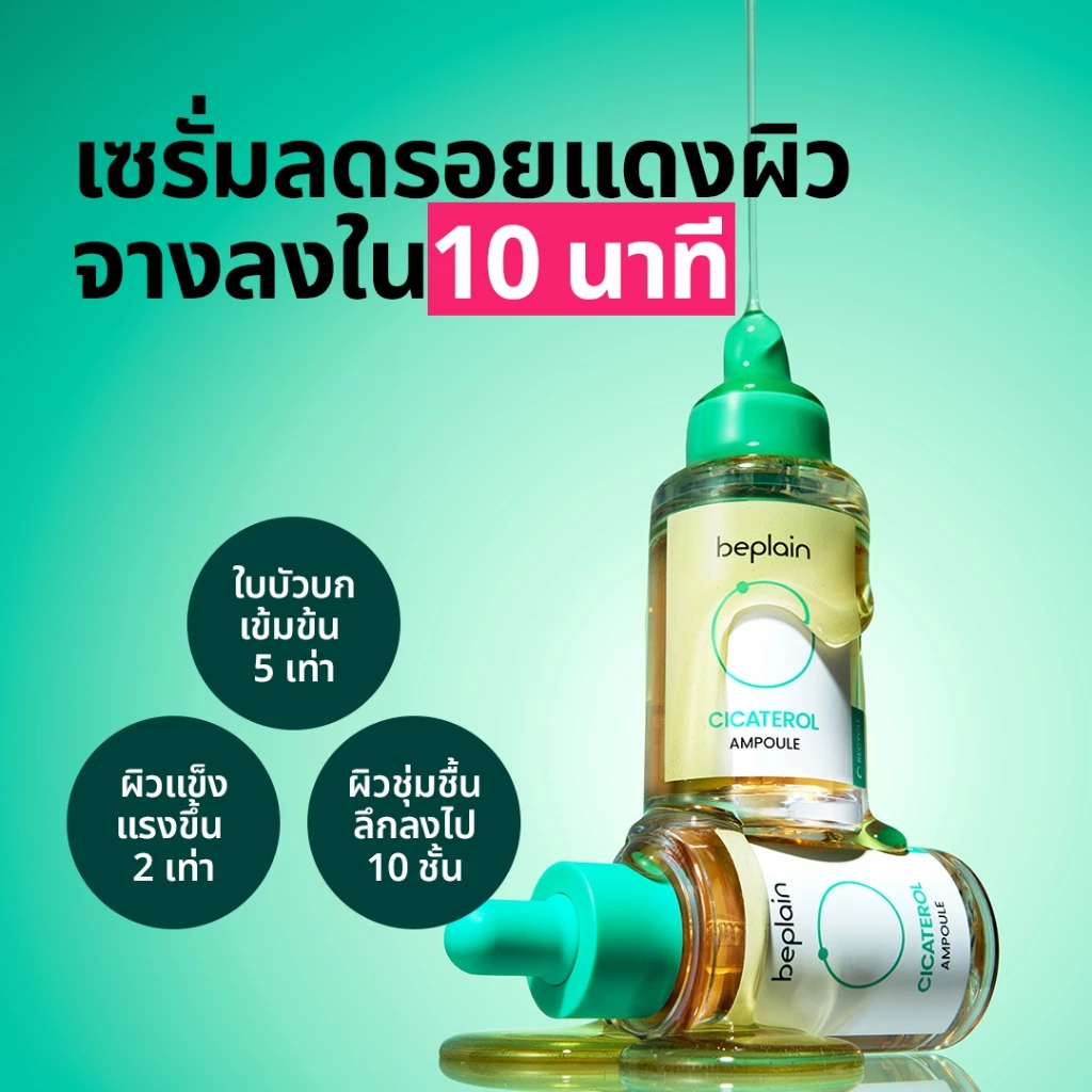 Beplain Cicaterol แอมพูลซิก้าเทโรล คือทางออกฉุกเฉินสำหรับผิวที่กำลังวิกฤต ไม่ว่าจะเป็นสิวเห่อ ผิวแดง หรือแพ้ง่าย โดยความพิเศษที่ทำให้แอมพูลขวดนี้แตกต่างจากเซรั่มใบบัวบกทั่วไปคือการใช้นวัตกรรม “Cicaterol” (Cica + Phytosterol) ซึ่งเป็นการนำสารสกัดใบบัวบกมาผ่านกระบวนการหมักด้วยโพรไบโอติกส์เฉพาะของแบรนด์ เพื่อสกัดเอา Phytosterol (เสมือนโปรวิตามินดี) ออกมา สารนี้มีคุณสมบัติในการบูสต์ผิวให้สงบลงและฟื้นฟูโครงสร้างผิวได้ลึกและเร็วกว่าสารสกัดใบบัวบกทั่วไป ช่วยกู้ผิวพังให้กลับมาแข็งแรงได้เพียงข้ามคืน