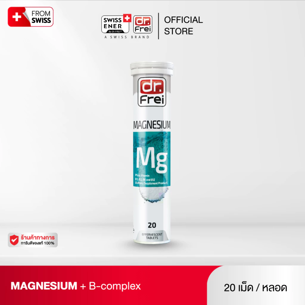 Swiss Energy Dr.Frei Magnesium Mg+Bcomplex บรรจุ 20 เม็ดต่อหลอด และสามารถทานได้ตั้งแต่อายุ 14 ปีขึ้นไป ไม่ว่าจะเป็นนักเรียน นักศึกษา หรือวัยทำงานที่ต้องใช้ความคิดและสมองอย่างหนัก ผลิตภัณฑ์นี้จะช่วยเสริมสร้างการทำงานของระบบประสาทและสมอง ทำให้ร่างกายและจิตใจมีความพร้อมที่จะรับมือกับกิจกรรมในแต่ละวันได้อย่างเต็มที่ ทั้งยังช่วยส่งเสริมให้การนอนหลับมีคุณภาพมากยิ่งขึ้น ส่งผลให้ตื่นเช้ามาอย่างสดใสและมีพลัง