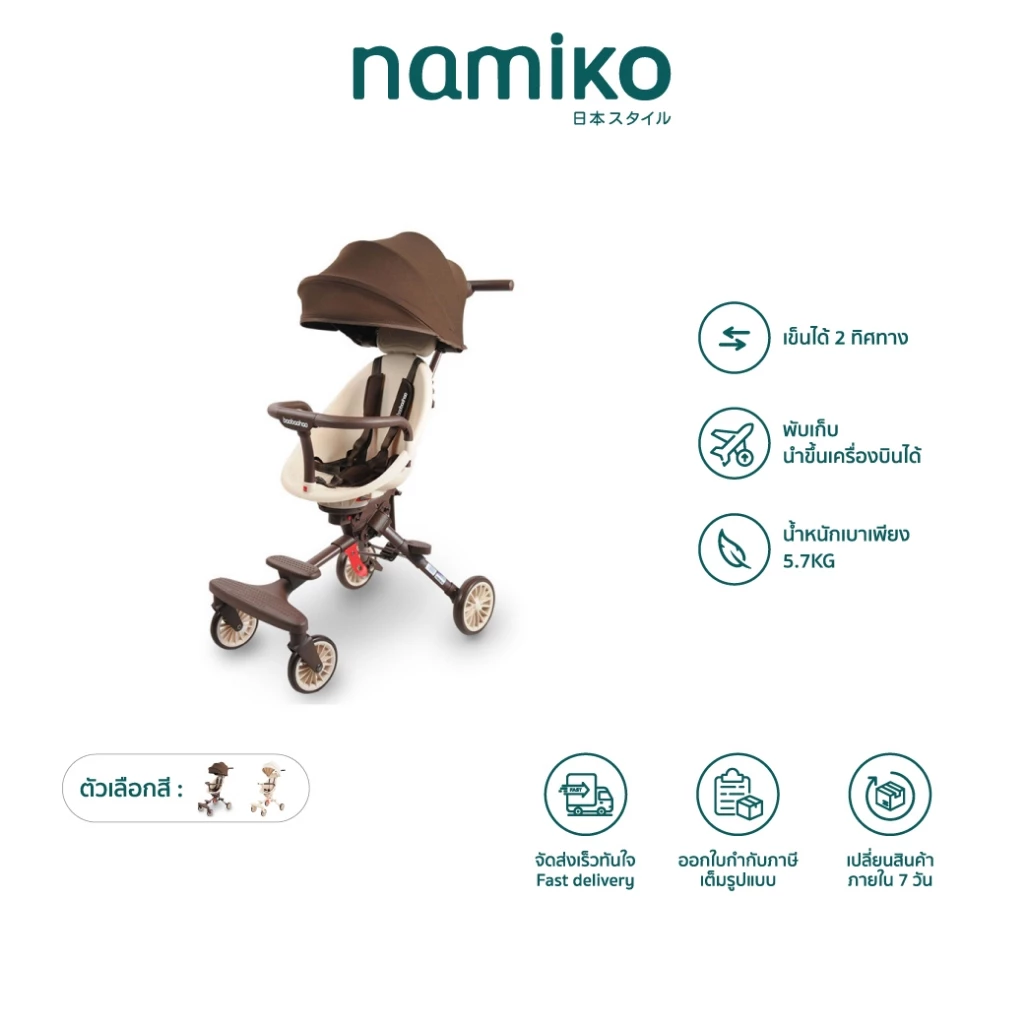 - 360° Rotation: เบาะนั่งหมุนได้รอบทิศทาง 360 องศา สลับเข็นหน้า-หลังได้ทันที