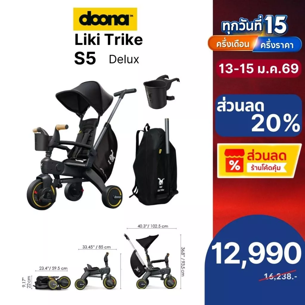 doona LIKI รุ่น S5 รถเข็นเด็ก รถเข็นสามล้อ คือนิยามใหม่ของรถเข็นเด็กที่ผสมผสานฟังก์ชันของจักรยานสามล้อเข้าไว้ด้วยกันอย่างลงตัว โดยครองตำแหน่งรถเข็นสามล้อที่พับได้เล็กที่สุดในโลก ออกแบบมาเพื่อคุณพ่อคุณแม่ยุคใหม่ที่รักการเดินทาง ด้วยนวัตกรรมที่ช่วยให้คุณสามารถพับและกางออกได้รวดเร็วเพียง 3 วินาที ช่วยตัดปัญหาความยุ่งยากในการจัดเก็บ และเปลี่ยนทุกการเดินทางให้เป็นเรื่องง่ายและสนุกยิ่งขึ้น