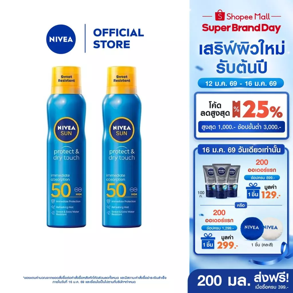 นีเวีย ซัน กันแดดผิวกาย โพรเท็คแอนด์ดราย ทัช รีเฟรชชิ่ง สเปรย์กันแดด เอสพีเอฟ 50